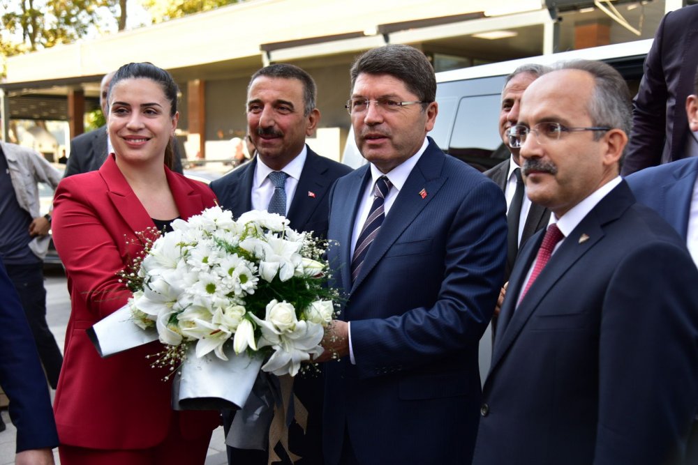 Bakan Yılmaz Tunca çiçek takdim edildi.