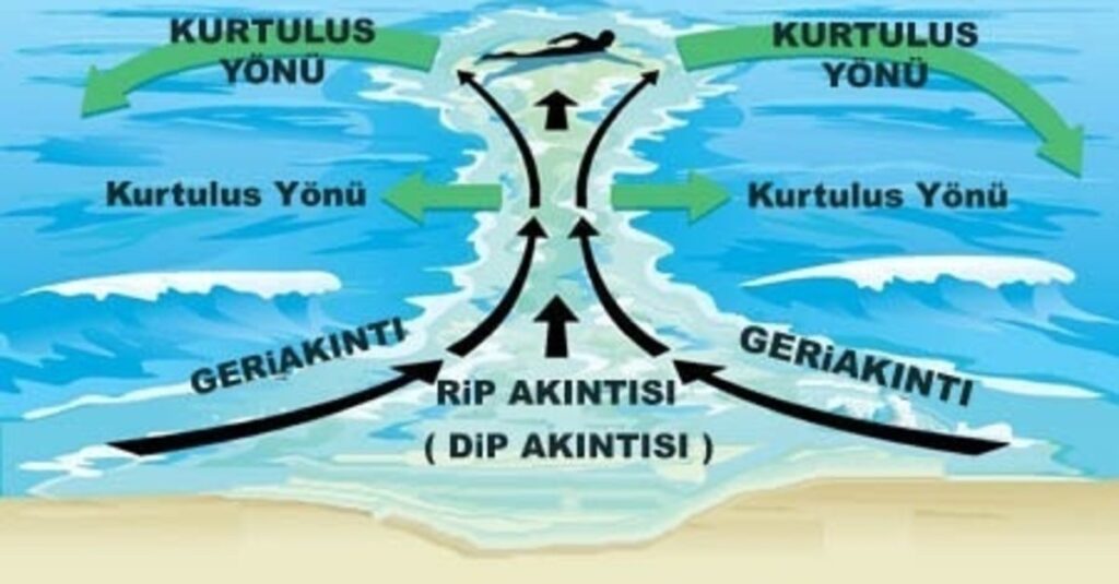 Denize giren kişinin rip akıntısına yakalandığında ise sahile ya da açık denize doğru değil, kıyıya paralel bir şekilde sağa-sola doğru yüzmek şartıyla kendilerini kurtarabileceklerini ifade eden uzmanlar, deniz suyundaki değişiklikler ve köpüklenmelerin rip akıntısının belirtilerinden bazıları olduğunu söyledi.