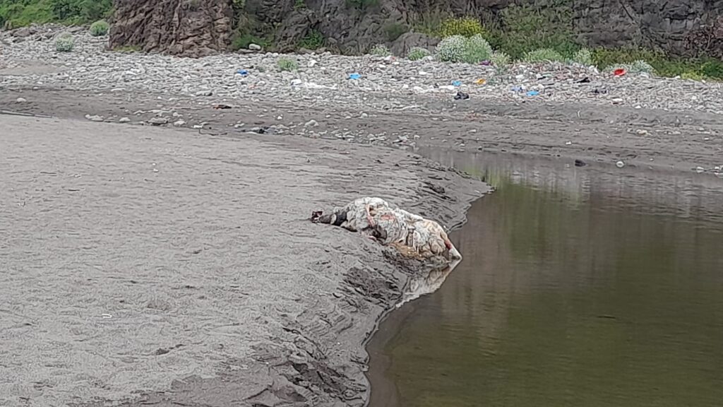 Zonguldak’ın Alaplı ilçesi ile Kdz Ereğli ilçesi sınırları arasında bulunan Cennet Koyu bölgesinde yaklaşık 10 gün önce yunus ve koyun leşleri kıyıya vurdu. Tepkilerini sosyal medyadan dile getiren vatandaşlar şikayetlere rağmen hayvan leşlerinin sahilden toplanmadığını ifade ettiler. Vatandaşlar, “Burası Alaplı-Ereğli arasında bulunan cennet koyu burada insanlar denize giriyor yaz boyunca ölü yunus ve ölü koyun tehlike ve koku saçtığı için yetkilerin ilgilenmesine rica ederiz” mesajı yayınlayarak yetkilileri uyarmaya çalıştılar.