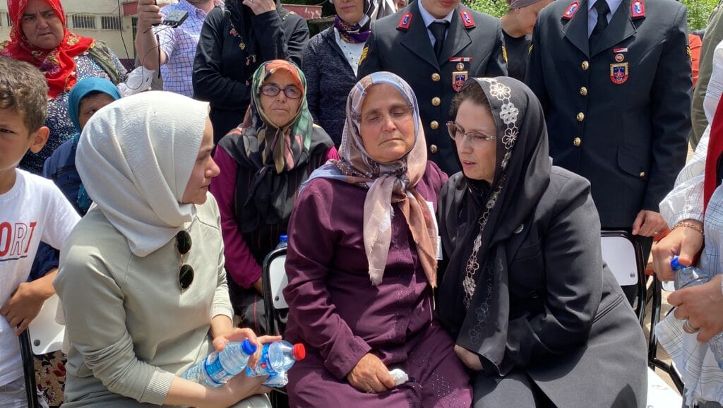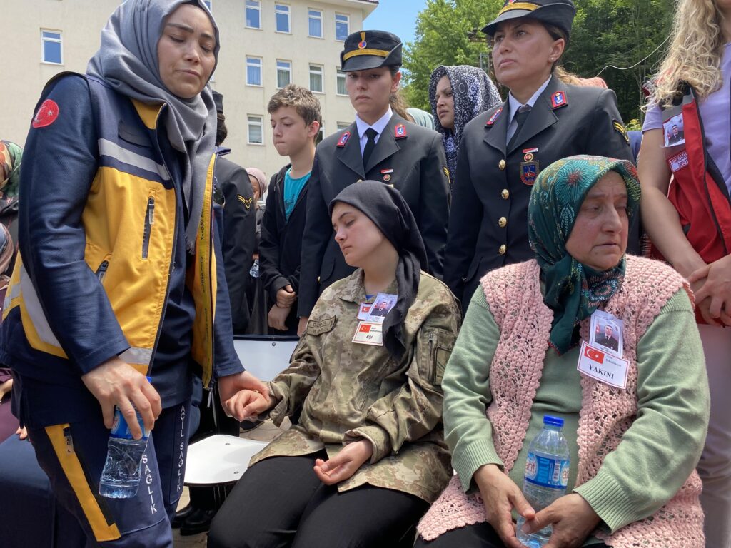 Oğlunun şehadet haberini aldıktan sonra kalp krizi geçiren ve kaldırıldığı hastanede anjiyo olup taburcu edilen şehit babası Mehmet Özkaya cenaze programı boyunca güçlükle ayakta durdu. Şehidin acılı eşi Sevgi Özkaya’da eşinin tabutuna sarılarak gözyaşı döktü.