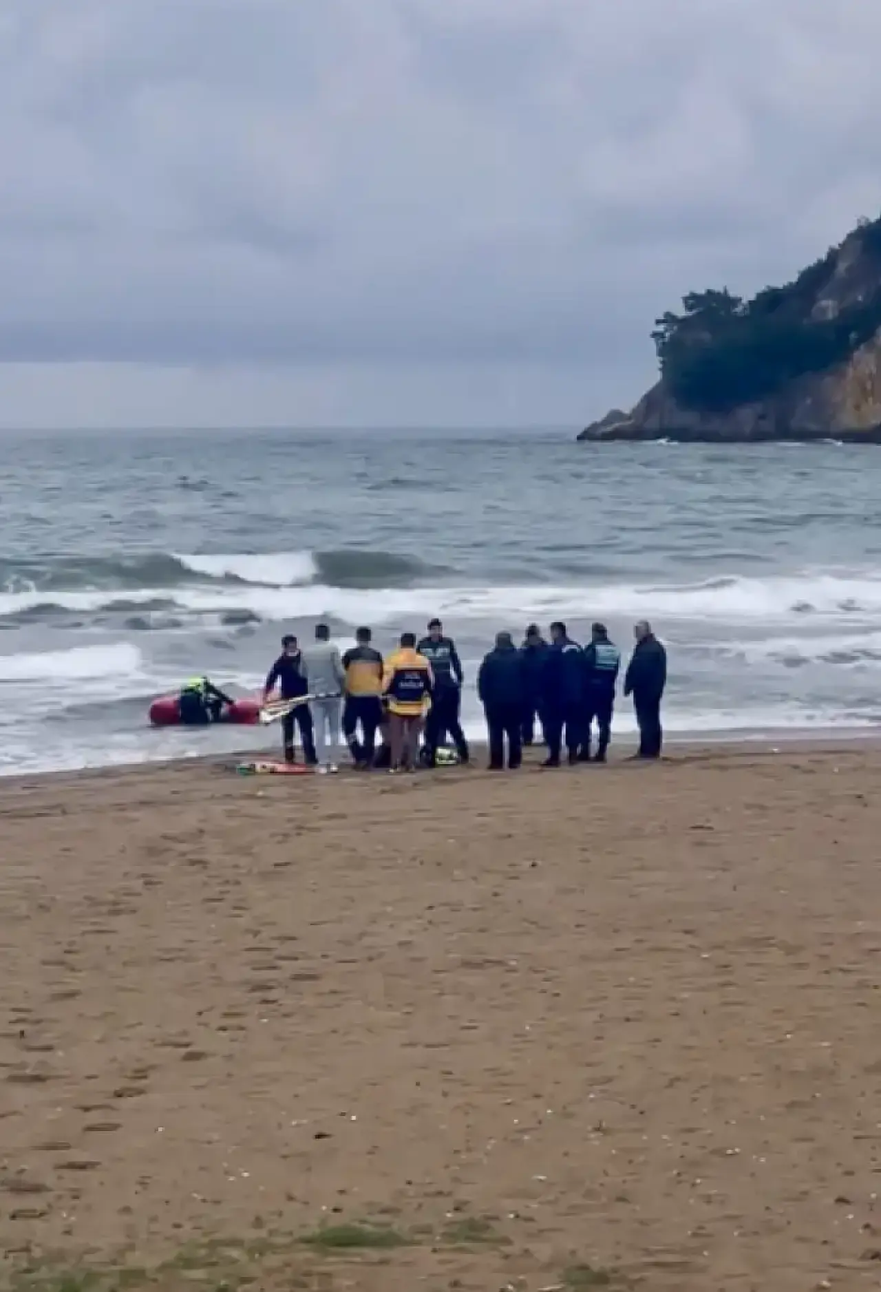 İhbar üzerine bölgeye Sahil Güvenlik ve jandarma ekipleri sevk edildi. Dalgaların etkisiyle kıyıya doğru sürüklenen bot üzerindeki kişilerin M.T. (47) ve C.Ö. (35) olduğu tespit edildi.