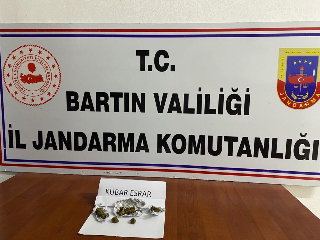 Bartın’ın Gökçekıran köyünde dere kenarı mevkiinde O.K., M.Ö. ve H.K. isimli şahısların üzerinde uyuşturucu madde olduğu ve uyuşturucu madde kullandıklarına dair edinilen istihbari bilgilerin ardından şahısların kaba üst aramalarında 4 gr kubar esrar maddesi ele geçirilirken 3 şüpheli gözaltına alındı.
