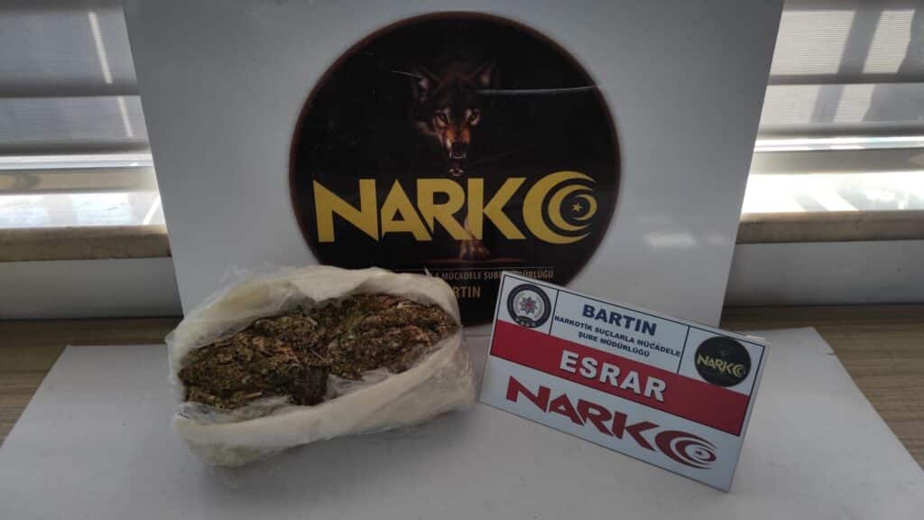 Bartın İl Emniyet Müdürlüğü Narkotik Suçlarla Mücadele Şube Müdürlüğü ekiplerince yapılan istihbarat çalışmaları neticesinde kent merkezine uyuşturucu madde getireceği değerlendirilen bir otomobil uygulama noktasında durduruldu. Otomobilde bulunan H.İ.Ö. isimli şahsın Bartın İl Emniyet Müdürlüğünde görevli polis memuru olduğu anlaşılırken SİS isimli narkotik arama köpeği ile araç içinde yapılan aramalarda aracın bagaj kısmındaki bir çantanın içerisinde 460,51 gram marihuana (esrar) maddesi ele geçirildi.