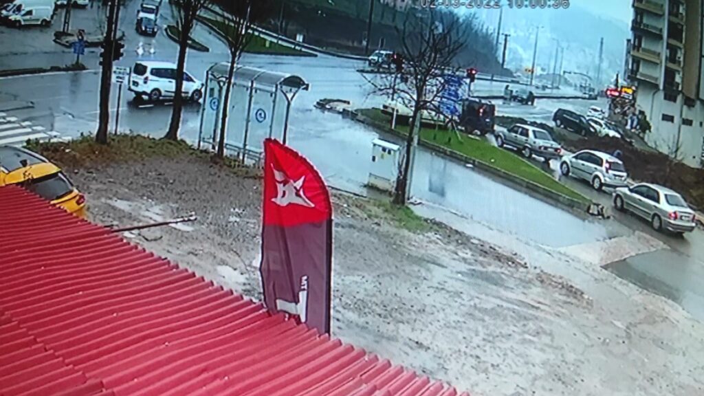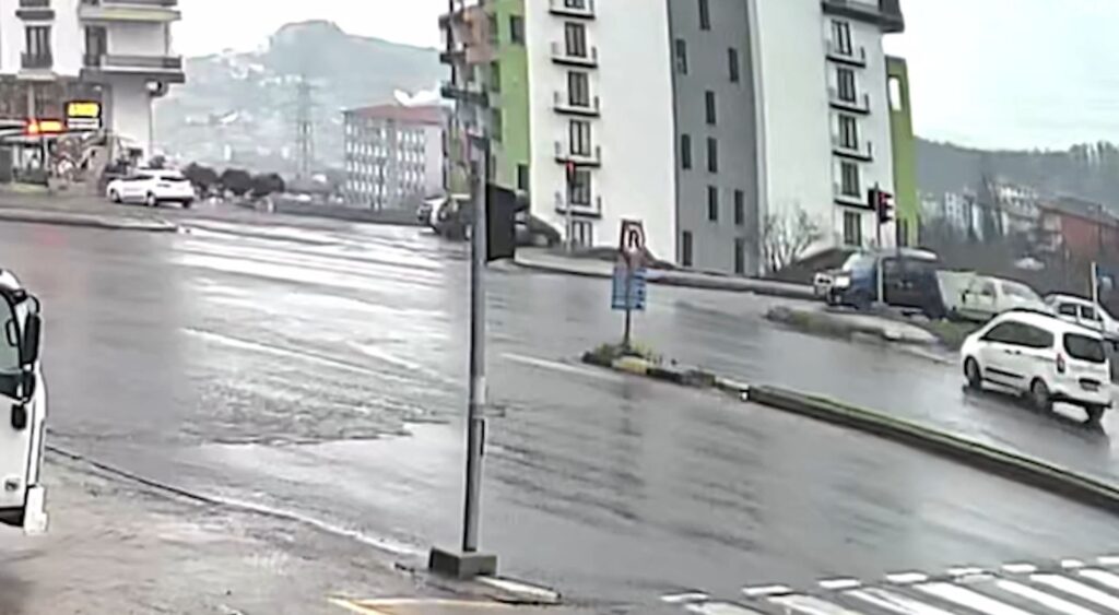 Öte yandan yaşanan kaza anı yakındaki bir iş yerinin güvenlik kameraları tarafından saniye saniye kaydedildi. Görüntülerde aynı istikamette seyir eden otomobillerin çarpışması ve 67 LG 933 plakalı otomobilin yoldan çıkarak kaldırımı aştığı görülüyor.