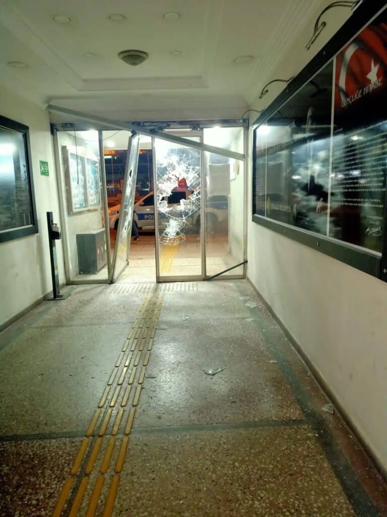 Gece meydana gelen olayda alkollü olduğu öğrenilen iki kişi belediyenin giriş kapısını baltayla kırıp içeri girdi. Daha sonra başkanın makam odasına gelen saldırganlar balta ve levye ile kırdıkları kapıdan içeri girerek odadaki camları ve çerçeveleri kırdı.