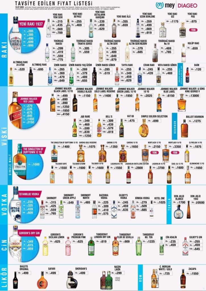 ÖTV'deki artıştan sonra 3 gün önce tüm alkollü içkilere yüzde 15 ila 25 aralığında zam yapılmıştı. Bugün de Mey grubu rakı, votka, viski ve cin ürünlerine KDV artışı nedeniyle bir kez daha zam yaptı.