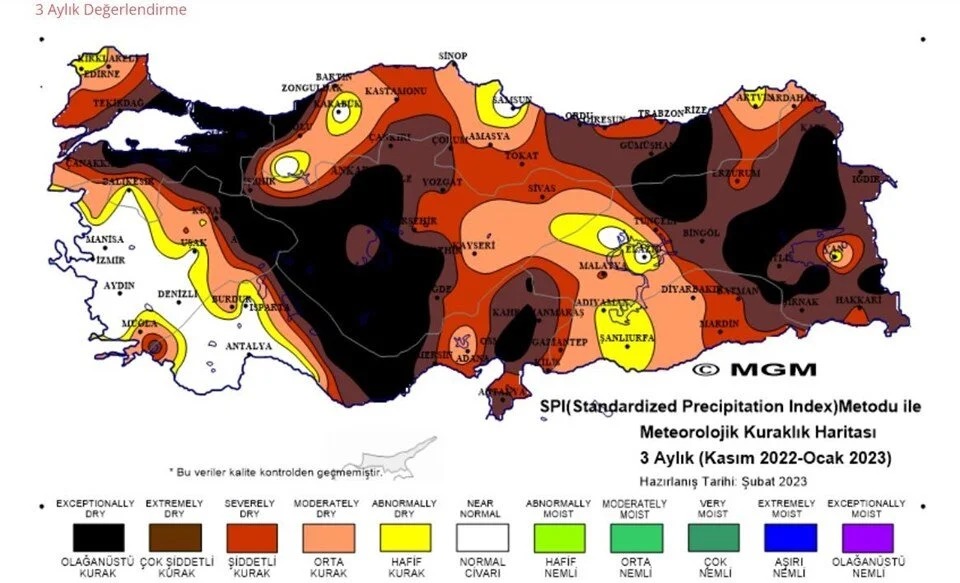 Çevre, Şehircilik ve İklim Değişikliği Bakanlığı Meteoroloji Genel Müdürlüğü, yılın ilk kuraklık haritasını yayınladı. Yayınlanan haritaya göre; Erzincan, Yalova, İstanbul, Kocaeli, Bursa, Kütahya, Afyonkarahisar, Konya, Ankara, Karaman, Mersin, Osmaniye, Mersin, Bayburt, Ağrı ve Muş olağanüstü kuraklık tehlikesi altında olurken; Karadeniz, İç Anadolu, Doğu ve Güneydoğu Anadolu'da da ortalama yüzde 70 azalma var. Olağanüstü kurak yaşayan kentlerin arasında başta İstanbul, Bursa, Balıkesir, Afyonkarahisar, İç Ege Mersin Konya, Rize gibi bazı kentler yer alırken, bu kentler Zonguldak da yer aldı.