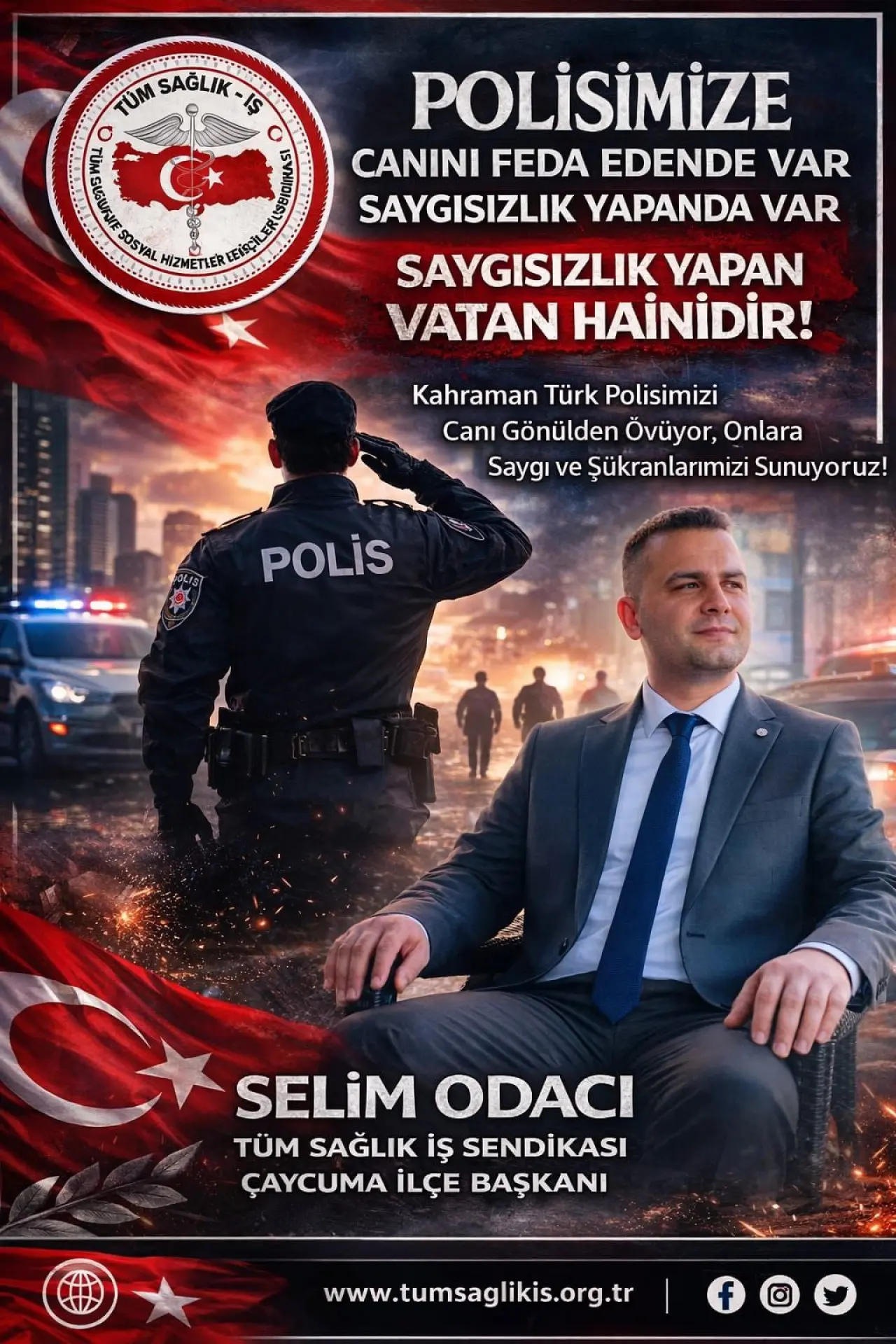 Bu nedenle emniyet teşkilatımıza yönelik her türlü haksız ithamı ve saygısızlığı reddediyor, kahraman polislerimizin her zaman yanında olduğumuzu açıkça ifade ediyoruz.