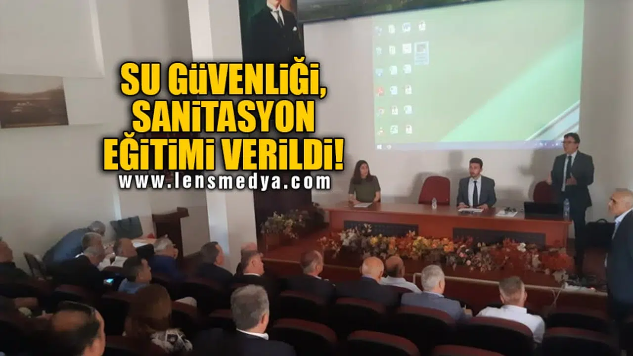 İlçe Özel İdare Temsilcisi Kemalettin Yaşar, İlçe Sağlık Müdürlüğü Çevre Sağlığı Teknisyenleri Fatih Korkmazyiğit, Ezgi Mocan ve Mustafa Oğuz Gökçek’in de hazır bulunduğu toplantıda Uzm.Gıda Müh. Tuğrul Dereli tarafından 'İçme Kullanma Suyu Şebekesinde Su Güvenliği ve Sanitasyonu' eğitimi verilerek; içme kullanma sularında kalite parametreleri ve halk sağlığı açısından değerlendirilmesi, suların kirlenme nedenleri, dezenfeksiyon, su uygunsuzluğu ve yönetimi konularında bilgiler verildi. Eğitim sonunda izleyicilerden gelen sorular cevaplandı.