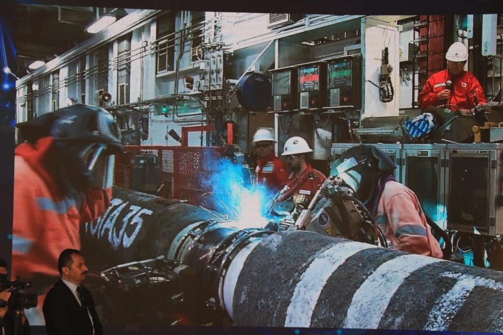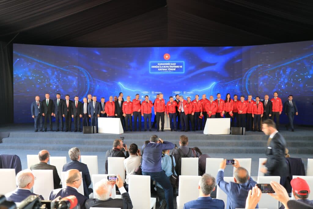 Zonguldak’ın Çaycuma ilçesine bağlı Filyos beldesinde Karadeniz’de bulunan 540 milyar metreküplük doğalgaz rezervinin karaya çıkartılması için denize ilk boru indirme ve kaynak töreni gerçekleştirildi. Törene Cumhurbaşkanı Recep Tayyip Erdoğan’ın yanı sıra Cumhurbaşkanı Yardımcısı Fuat Oktay, Cumhurbaşkanlığı Yüksek İstişare Kurulu Üyesi Köksal Toptan, İçişleri Bakanı Süleyman Soylu, Enerji ve Tabii Kaynaklar Bakanı Fatih Dönmez, Milli Eğitim Bakanı Prof. Dr. Mahmut Özer, Sanayi ve Teknoloji Bakanı Mustafa Varank ile Tarım ve Orman Bakanı Vahit Kirişci, AK Parti Genel Başkan Yardımcıları, partililer ve davetliler katıldı.