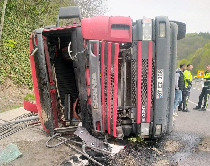 Edinilen bilgiye göre kaza, Zonguldak-Ereğli yolu Üçköy mevkisinde yaşandı. Şenol Dilbaz (44) idaresindeki 67 EZ 308 plakalı tır kontrolden çıkarak devrildi. Çevredeki diğer sürücülerin haber vermesi üzerine olay yerine jandarma ve sağlık ekipleri sevk edildi. İlk müdahalesi yapılan sürücü Şenol Dilbaz'ın hayatını kaybettiği belirlendi. Kazayla birlikte tırın dorsesindeki demirler de etrafa saçıldı. Sürücünün cansız bedeni olay yeri incelemesinin ardından hastane morguna kaldırılırken, olayla ilgili başlatılan soruşturma sürüyor.