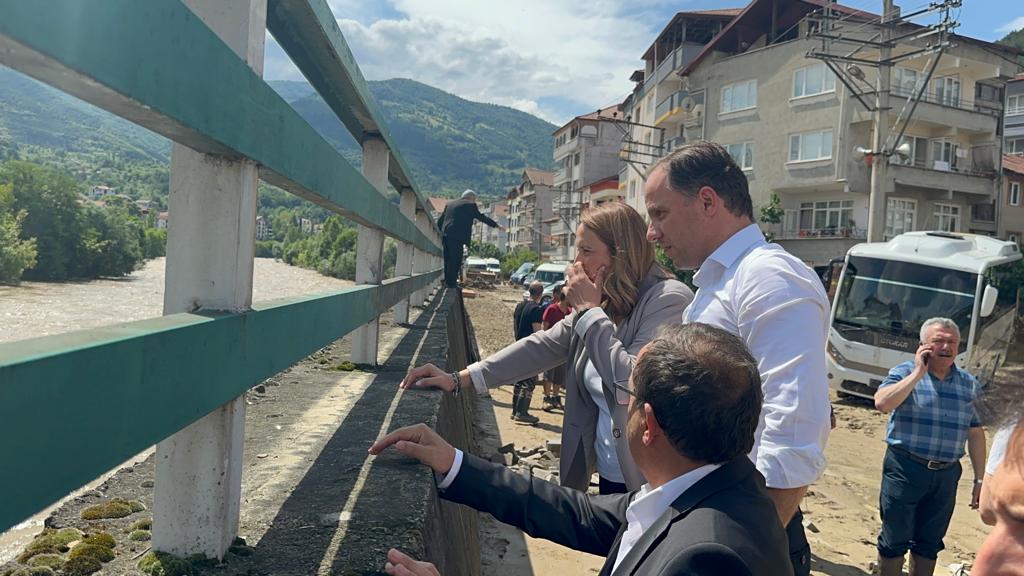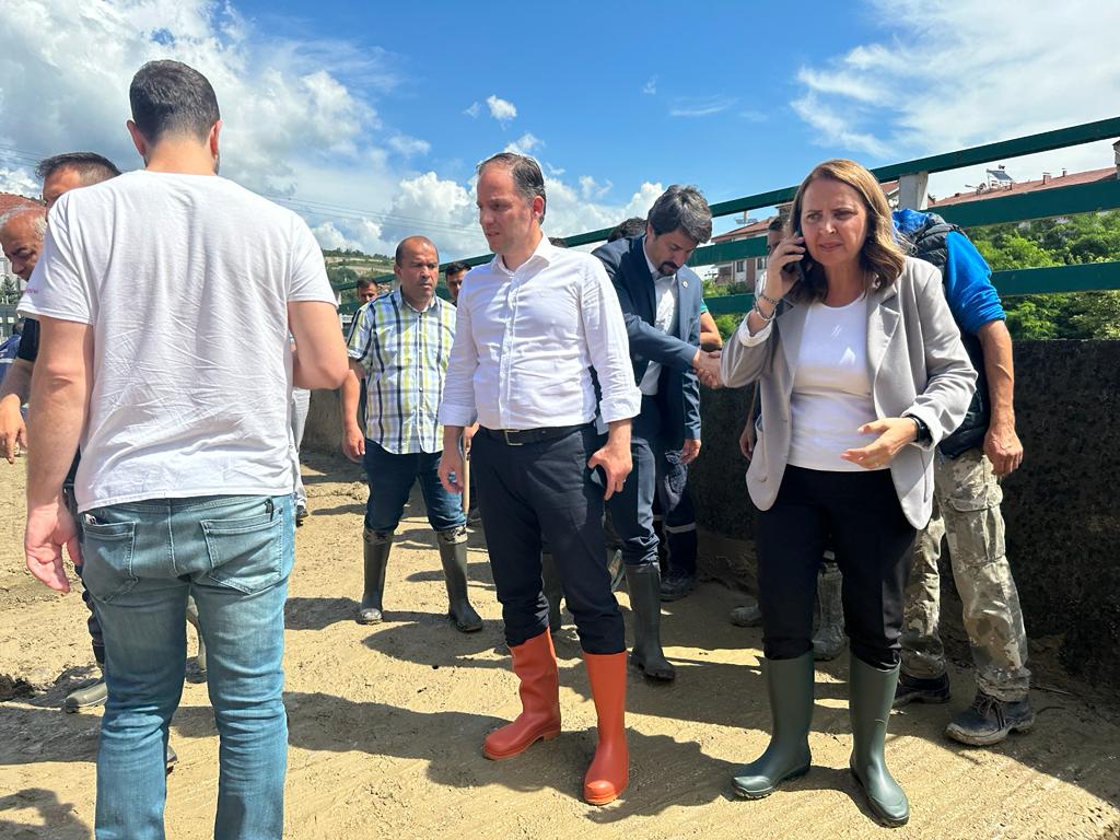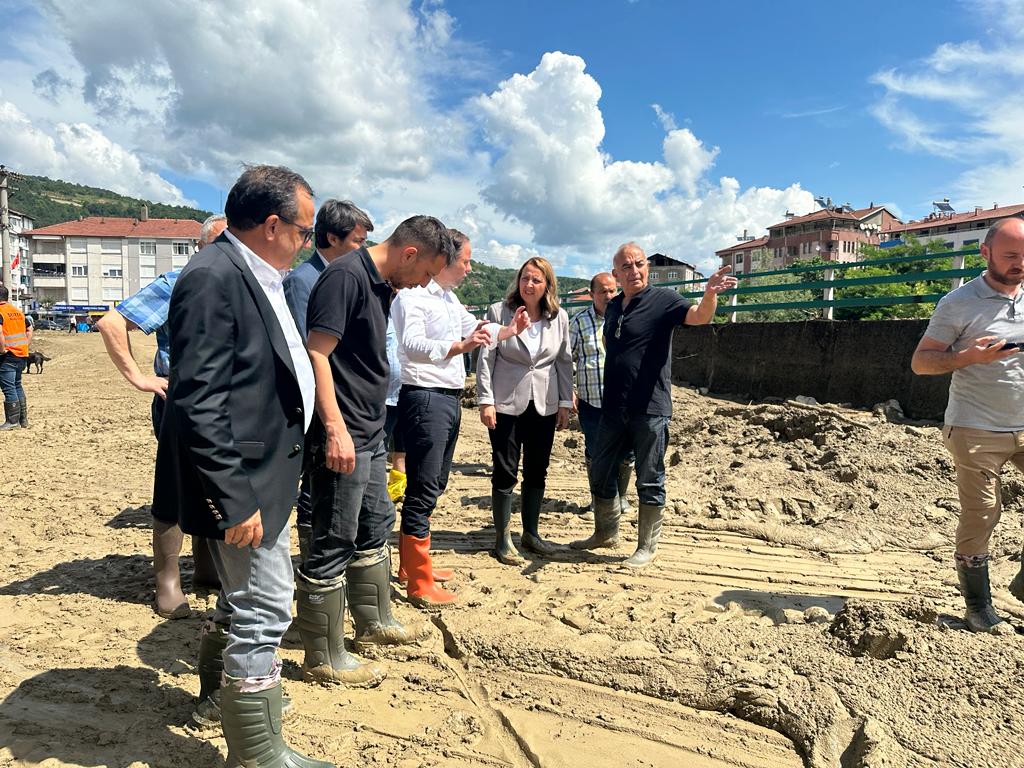 Cumhuriyet Halk Partisi (CHP) Doğa Haklarından Sorumlu Genel Başkan Yardımcısı Semra Dinçer, CHP Zonguldak Milletvekili Deniz Yavuzyılmaz, Eylem Ertuğrul, CHP Bolu Milletvekili Türker Ateş, CHP Düzce Milletvekili Talih Özcan, Devrek Belediye Başkanı Çetin Bozkurt, Devrek İlçe Başkanı Yaşar Bükrü selden en çok etkilenen yerlerden olan Devrek ilçesi Karşıyaka Mahallesinde incelemelerde bulunuyor.