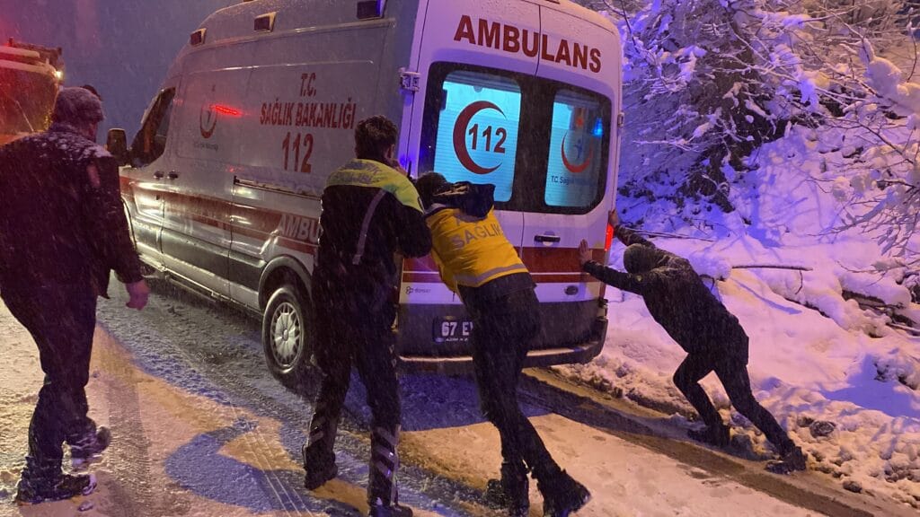 Kaza sonrası takviye gelen sağlık ekiplerinin ambulansı ise karlı yolda ilerlemekte güçlük çekti. Ambulansın üzerine çıkarak zıplayan ekipler ambulansı bulunduğu yerden kurtarmayı başardı. İş makinesi kısa sürede kaza yerine gelerek yolu açma çalışması yaptı.