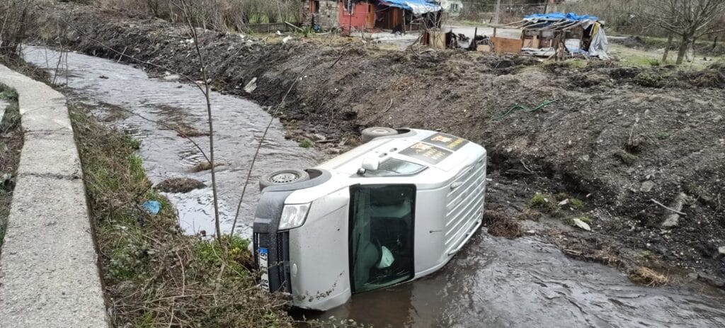 Zonguldak’ın Kilimli ilçesinde kontrolden çıkan araç dereye uçtu. Kazada sürücü yaralandı.