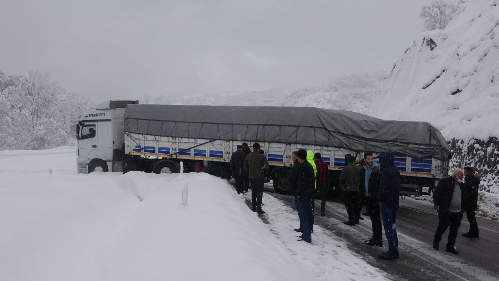 Sürücüler yoğun kar yağışı nedeniyle dikkatli seyir etti. Ekipler, yollara tuzlama ve kar küreme işlemi yaptı. Öte yandan kavşaktan dönerken kara saplanan tır, trafiği felç etti. Zonguldak-Ankara karayolu Himmetoğlu köyü kavşağından dönemeye çalışan tır, kavşakta kara saplanınca yol kapandı. Yolun kapanmasıyla karayolunda uzun araç kuyruğu oluştu. Karayolları ekiplerinin çalışmasıyla yol, araç trafiğine yeniden açıldı.