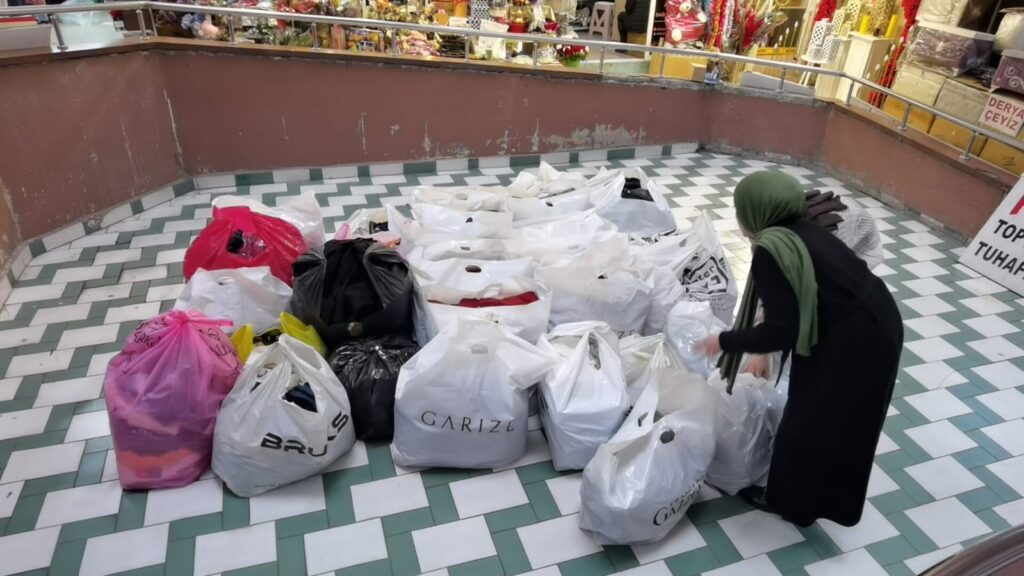 Emral Çarşısı esnafı deprem bölgesine kıyafet yardımı topladı.