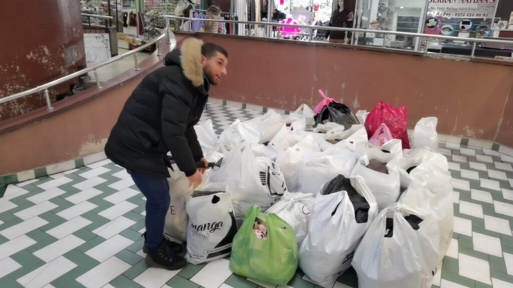 Emral Çarşısı esnaflarından Umut Korkmaz, “Sabah aldığımız kötü haberle uyandık. Emral Çarşısı esnafı olarak Türkiye’de birlik beraberlik seferberliği var. Bizde çarşı esnafı olarak seferberliğe ortak olmak istedik. Elimizden geleni yapmaya çalışıyoruz. Kızılay'la görüştük bütün görüşmeleri yaptık. Saat: 17;00’da Kızılay’da topladığımız ürünleri alarak tırlarla deprem bölgesine gönderecekler. Ürünlerde mağazalarda satışımız kazak, mont, battaniye, çorap, ayakkabı, elimizde ne varsa o bölgede onların işine yarayacak, herşey var" şeklinde konuştu.