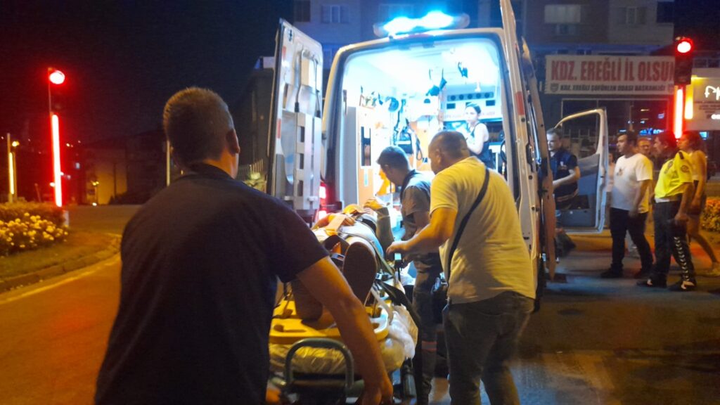 Kaza gece saatlerinde Şehit Ömer Halisdemir Bulvarı üzerindeki Açık Çarşı Kavşağı'nda meydana geldi. Edinilen bilgilere göre çarşı istikametine seyir halinde olan ve süratli olduğu iddia edilen 67 T 5053 plakalı ticari araç kavşaktan dönmek isteyen 67 ED 030 plakalı araca arkadan çarptı. Çarpmanın şiddeti ile 67 ED 030 plakalı araç yol kenarındaki refüje savruldu. Kaza gören vatandaşlar durumu 112 Acil Çağrı Merkezi'ne bildirdi. İhbar üzerine olay yerine çok sayıda ambulans ve polis ekibi sevk edildi. Kaza yerine ulaşan sağlık ekipleri her iki araçta bulunan 10 yaralıyı ambulanslara alarak müdahalede bulundu. Yaralılar olay yerinde yapılan müdahalenin ardından ilçedeki çeşitli hastanelere sevk edildi. Bu sırada araçlardan birinde yolcu olarak bulunan genç bir kadın kazanın sıcaklığının geçmesinin ardından vücudunda ağrı hissetmesi üzerine olay yerine ambulans istendi fakat merkeze yakın tüm ambulanslar kaza nedeniyle hastanelerde olduğu için olay yerine Erdemir'in ambulansı sevk edildi. Adrese gelen sağlık ekipleri yaralıya müdahalede bulunduktan sonra hastaneye kaldırdı. Kazaya karışan 2 araç olay yerine gelen çekici vasıtası ile kaldırıldı. Kdz. Ereğli Belediyesine bağlı ekipler ise araçlardan yola fırlayan parçaları temizledi.