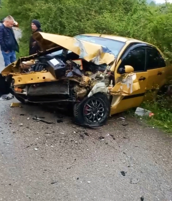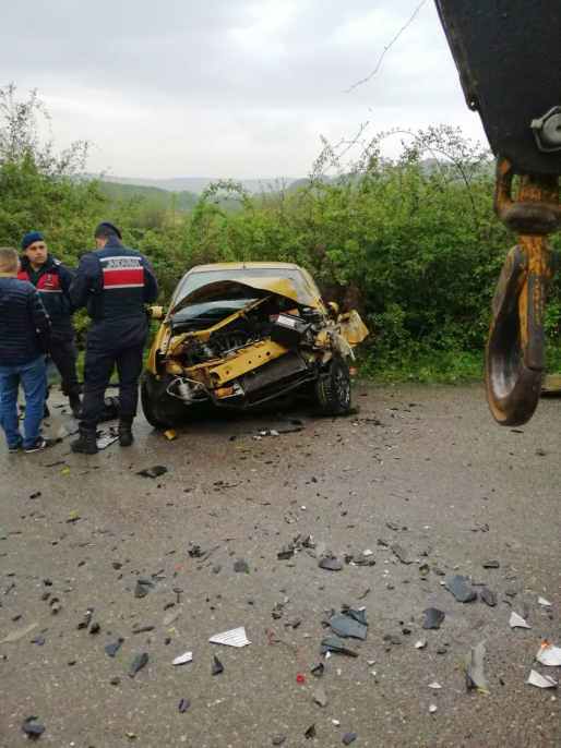 Edinilen bilgiye göre, şehir merkezine seyir halinde olan otomobil, seramik fabrikası yakınındaki virajda vinç ile çarpıştı.