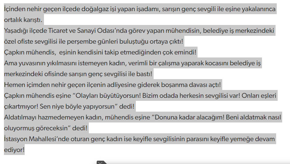 Zonguldak'ta magazin haberciliği yaparak isim vermeden yazılar kaleme alan Pusula Gazetesinde bu akşam çıkan haber okurları şaşkına çevirdi. Bir dönemin Şok ve Bulvar Gazetelerini hatırlatan Pusula Gazetesi isim vermediği bir ilçede, isim vermediği bir mühendisin aşk hayatını kaleme aldı. Hikayenin gerçek mi yoksa yazarın fantezisi mi olduğu tam olarak bilinmezken, mühendisin eşini aldattığı ve yakalandığı iddia edildi. Son günlerde ekonomik sorunlar yaşandığı kamuoyu tarafından Pusula Gazetesi imtiyaz sahibi Ali Rıza Tığ'ın bu haberle birilerine göz dağı vermek isteyerek kazanç elde edip etmediği merak konusu.
