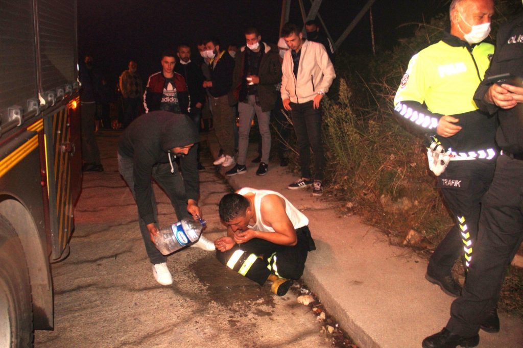 Alevlere canla başla müdahale eden itfaiye erleri kısa sürede evin içine kadar girerek alevleri söndürmeye çalıştı. Bu sırada M. K.., Ç.G ve T. Ö. isimli üç itfaiye eri, ailenin kaldığı dairede elektrik olmamasına rağmen kaçak akımdan etkilendi. Elektrik çarpan üç itfaiyeci, dumandan da etkilenince hastaneye kaldırıldı. İtfaiye erlerinin hayatı tehlikesinin bulunmadığı öğrenilirken tedavileri sürüyor.