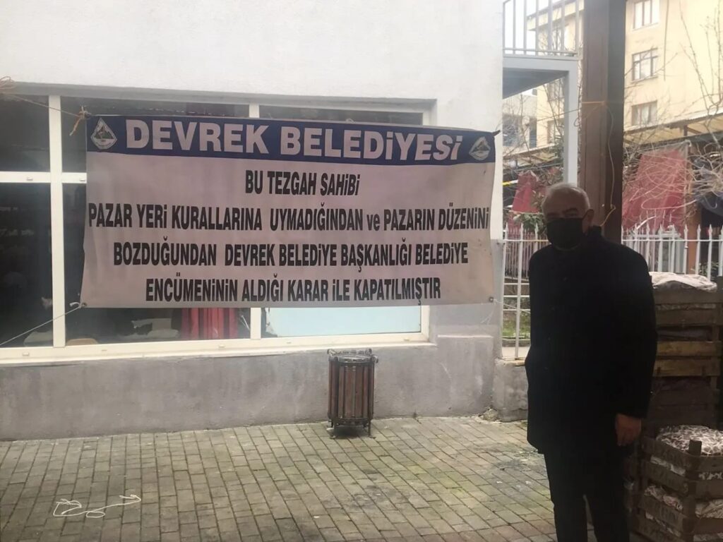Zonguldak’ın Devrek İlçesinde sebze meyve pazarında ticari faaliyet gösteren iki pazarcı esnafına pazar kurallarına uymadıkları ve pazar düzenini bozdukları gerekçesiyle geçici olarak Devrek Belediyesi encümen kararıyla pazardan men cezası verildi.