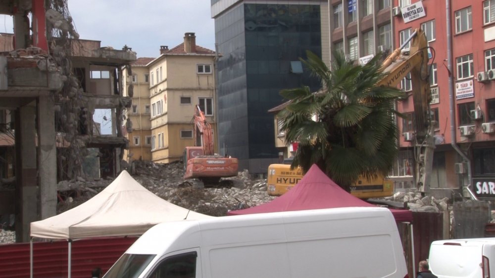 Zonguldak'ta depreme dayanıksız olduğu gerekçesiyle yıkım kararı alınan merkez çarşısının yıkımına devam ediyor.