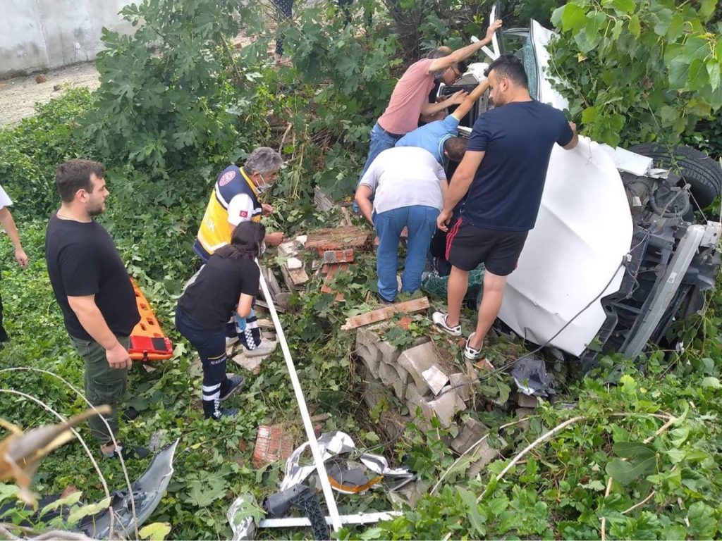 Zonguldak’ın Bakacakkadı beldesinde istinat duvarına çarpan otomobil, çalılık alana uçtu. Kazada 1 kişi yaralandı.