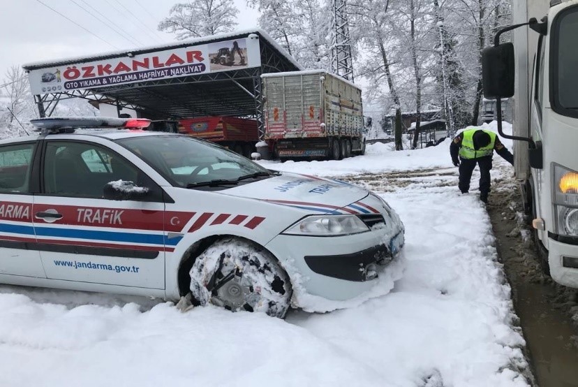 Zonguldak’ta jandarma ekipleri kış lastiği denetimi gerçekleştirdi.