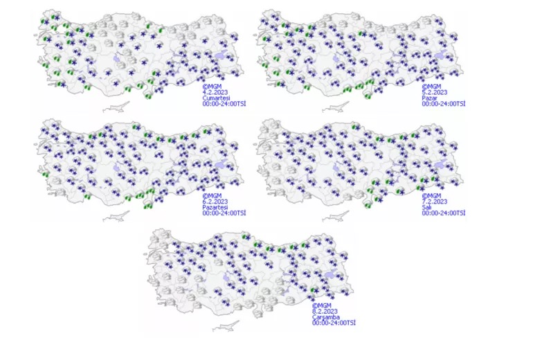 Meteoroloji Genel Müdürlüğü tarafından yapılan son değerlendirmelere göre: Cumartesi akşamına kadar yağmur şeklinde devam edecek yağışların, bu geceden itibaren hava sıcaklığının düşmesiyle birlikte yarın kara dönüşmesi bekleniyor.
