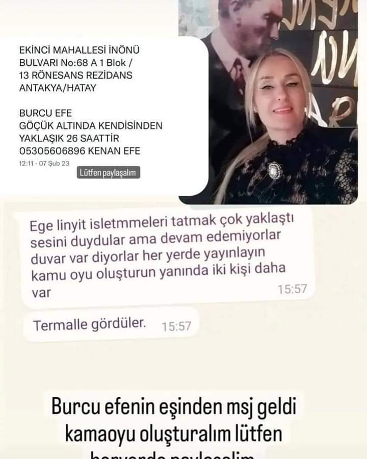 Zonguldak Ereğlili Burcu Efe'nin Kahramanmaraşta meydana gelen depremden etkilenen Hatay'ın Antakya ilçesinde hayatını kaybettiği öğrenildi.