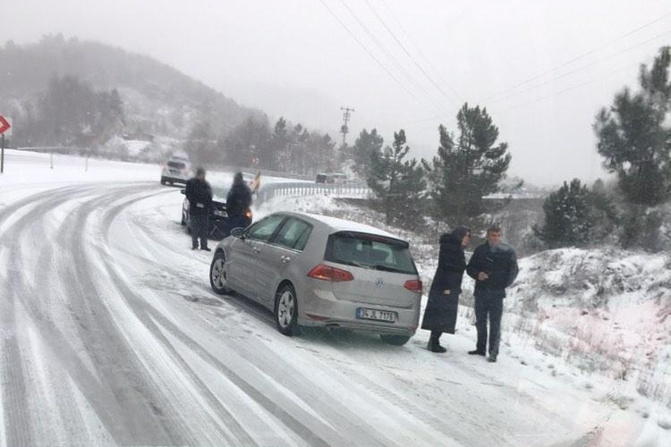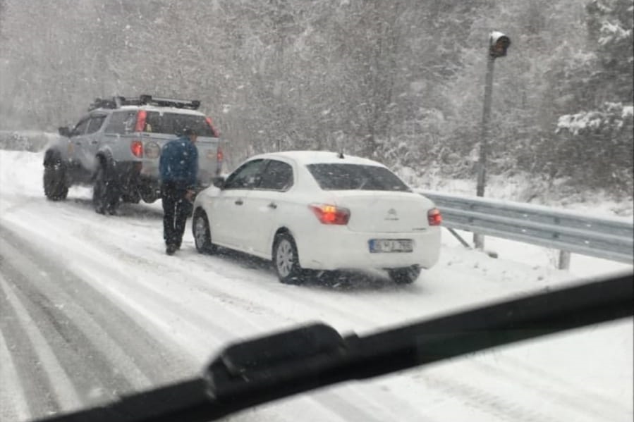 Karayolunun özellikle yüksek kesimlerinde aralıksız devam etmesi sonucu hazırlıksız çıkan araçlar yolda mahsur kaldı.