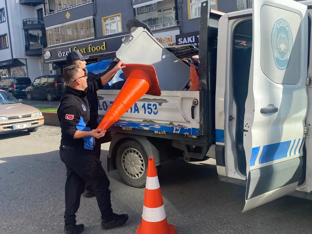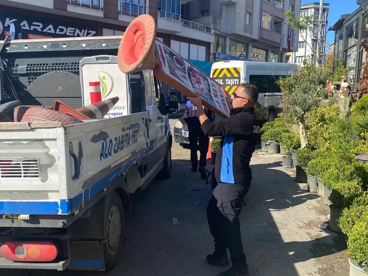 İlçe emniyet müdürlüğüne bağlı polis ekiplerinin de destek verdiği operasyonda kaldırımlara konan plastik duba, reklam flama ve tabela, lastik ve benzeri işgal malzemeleri tek tek toplandı.