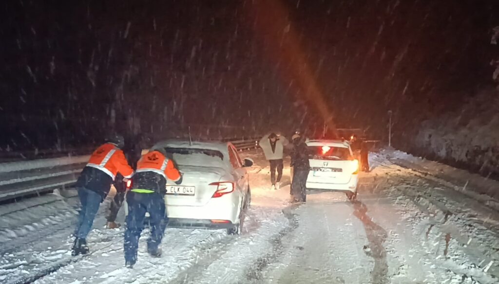 Kar yağışı dün gece Zonguldak-Ereğli yolunda etkili.