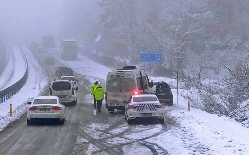 Edinilen bilgilere göre, Zonguldak-Ereğli yolunda gün içinde belli aralıklarla etkisini artıran kar yağışı ulaşımı olumsuz etkiliyor. Yoğun kar yağışı nedeniyle çok sayıda maddi hasarlı kazalar meydana geldi. Kar yağışı ve kazalar nedeniyle Zonguldak-Ereğli yolunda ulaşım zaman zaman yavaş ilerliyor. Yetkililer yola çıkacak vatandaşları tedbirlerini almaları konusunda uyardı. Kar yağışının zaman zaman etkisini artırarak devam etmesi bekleniyor.