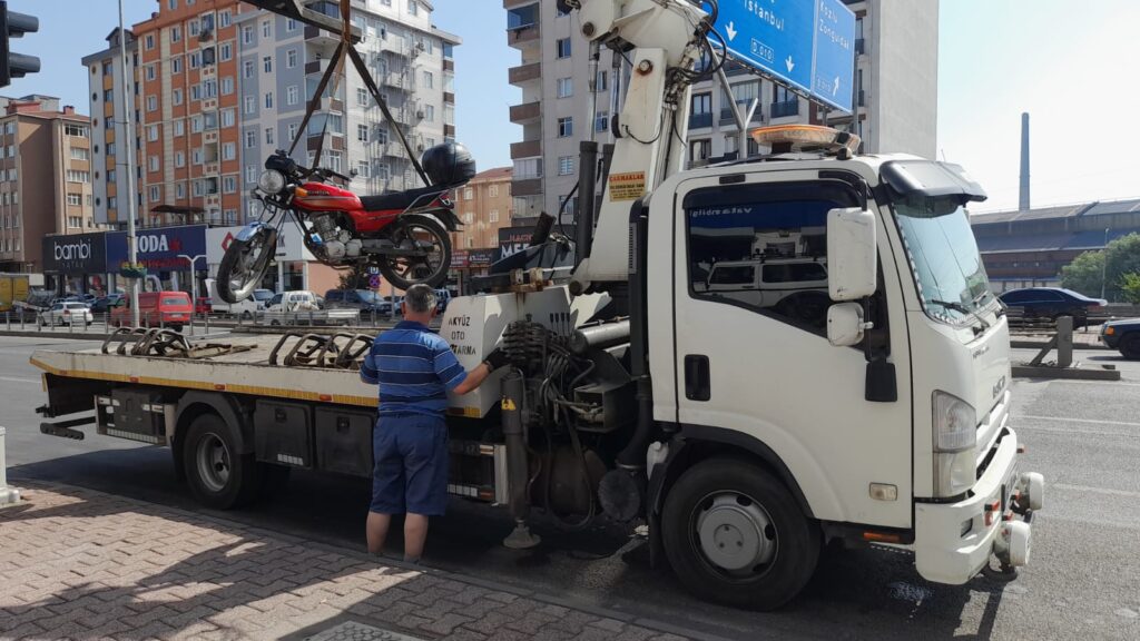 Motosiklet, çekici vasıtasıyla olay yerinden kaldırılırken, kaza ile ilgili inceleme başlatıldı.