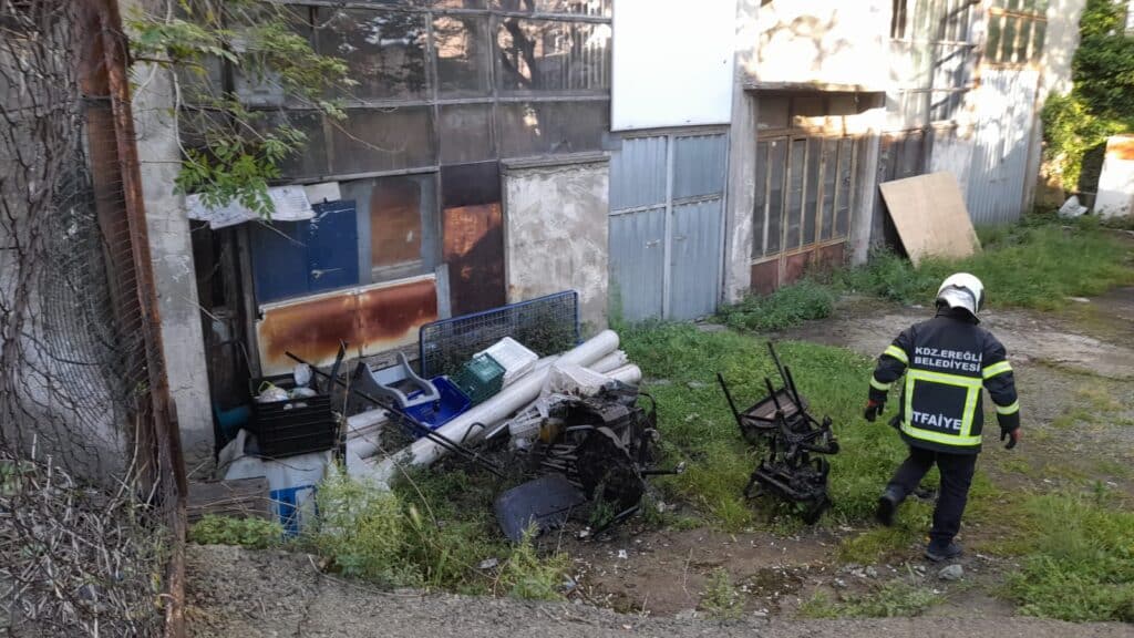 Zonguldak’ın Ereğli ilçesinde; eskimiş plastik sandalyelerin üzerine fark edilmeden atılan izmarit, yangın çıkmasına neden oldu. O sırada tesadüfen evin yanından geçen muhtar İlknur Güleri Tekin ise yangını vatandaşlara ve itfaiyeye bildirerek alevlerin evi sarmasını engelledi.