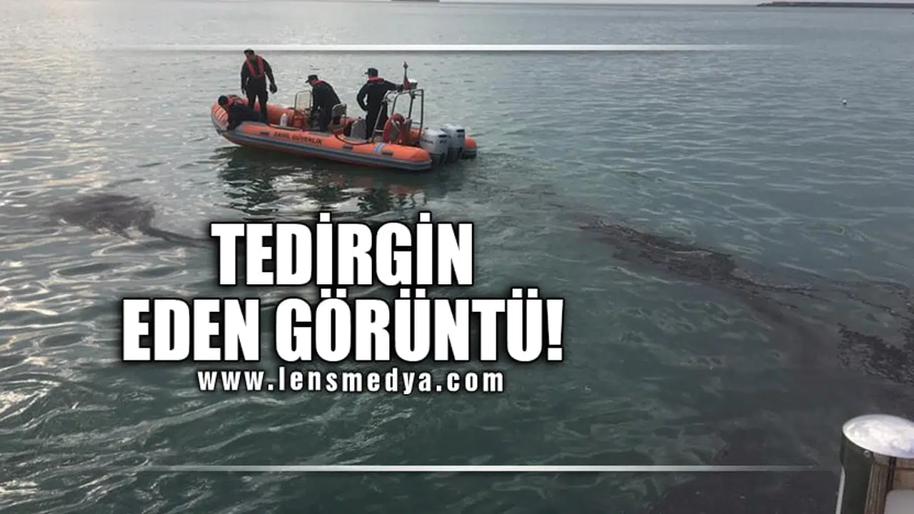 Zonguldak’ın Ereğli ilçesinde deniz yüzeyinde görülen siyahlık, sahilde yürüyüş yapan vatandaşları tedirgin etti. Bir vatandaşın ihbarı üzerine söz konusu bölgeye gelen Sahil Güvenlik ekibi, sudan numune aldı.