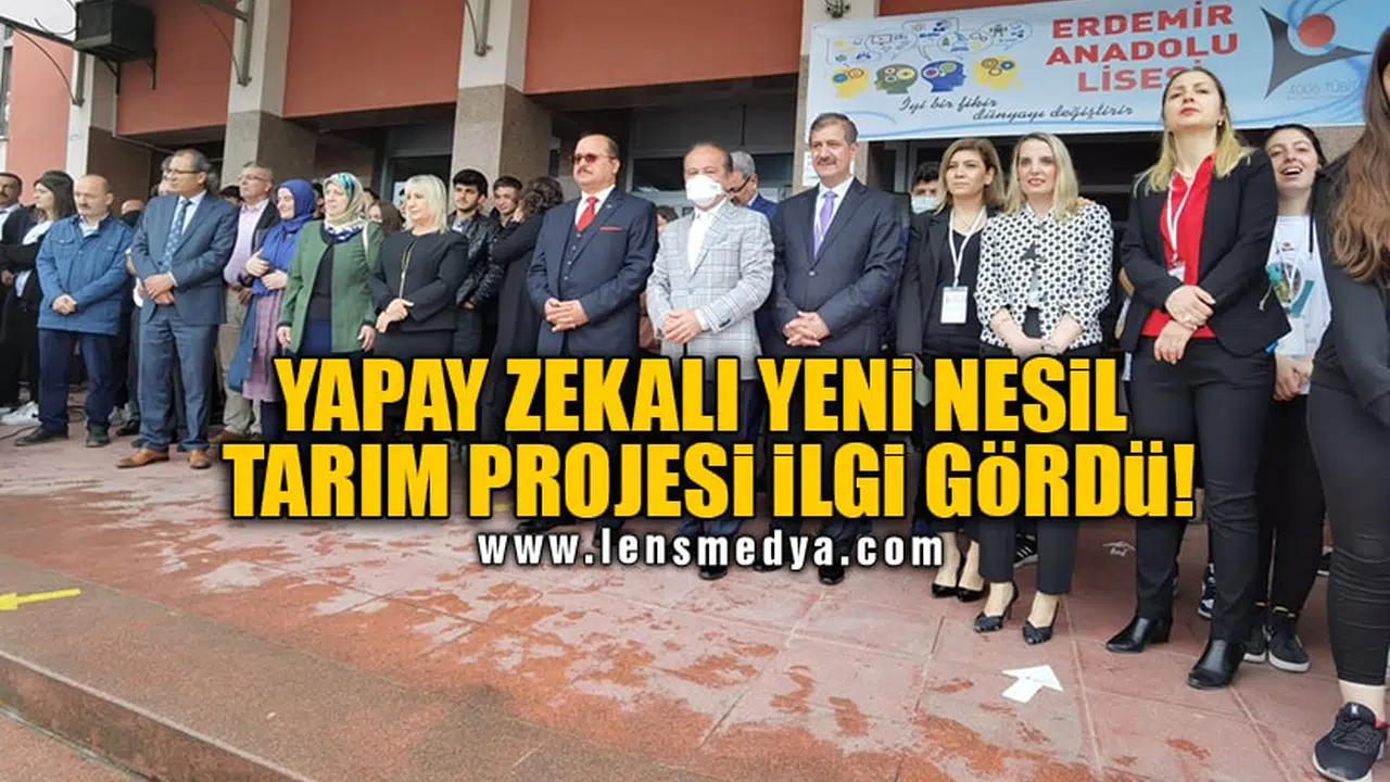 Fuarda Erdemir Anadolu Lisesi öğrencileri tarafından “Yeni Nesil Tarımda Yapay Zeka” adlı proje yapay zeka tarımda geleceğe yönelik kararlar veren bir sistem geliştirdi. İçinde insansız hava aracı, otomatik sulama, uzaktan kontrollü otomasyon traktörü yer aldığı proje protokol tarafında beğeni aldı.