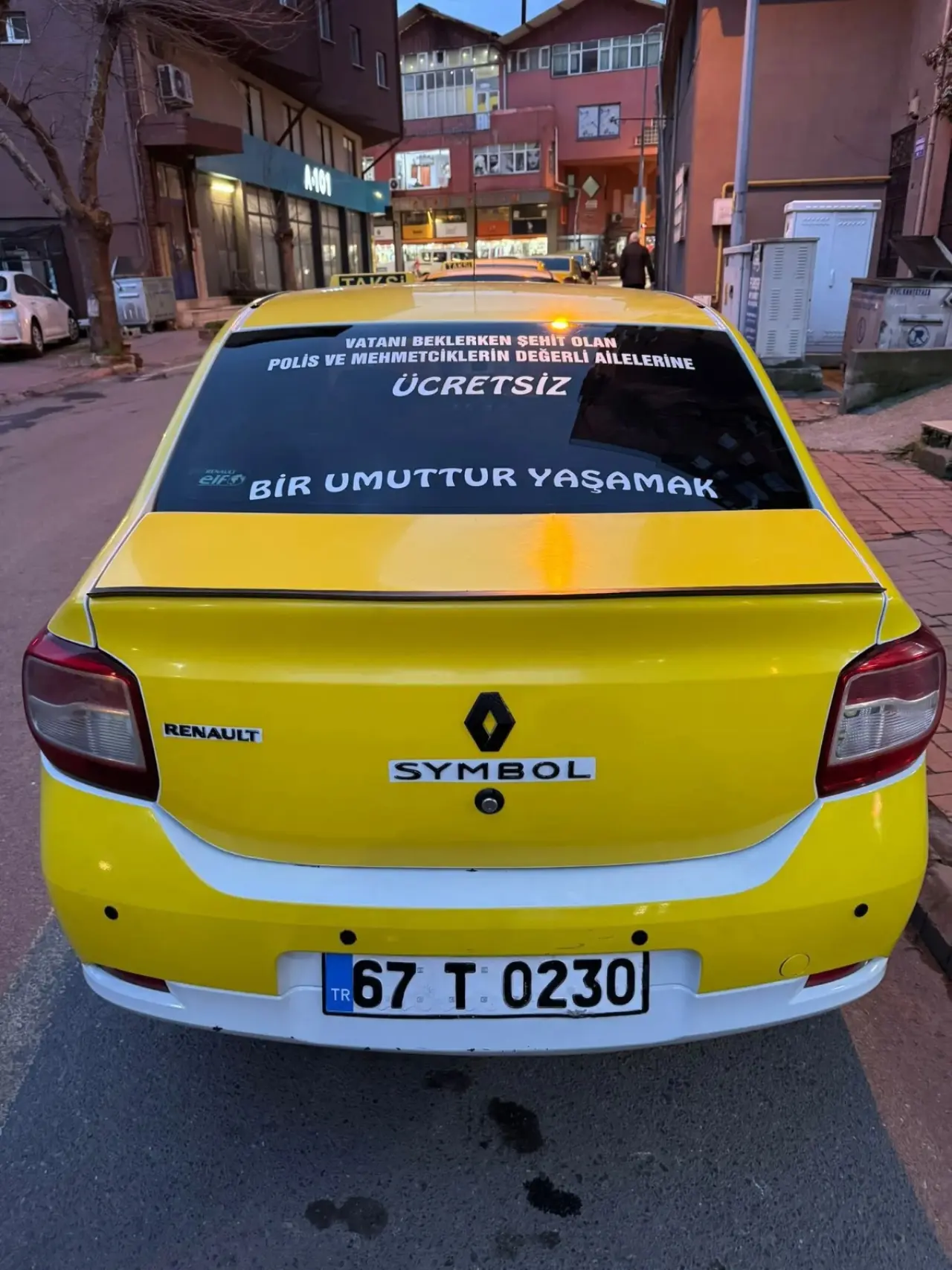 Toplumsal duyarlılığıyla dikkat çeken Olcay Korkut, T plakalı ticari taksisinin arka camına astığı yazıyla uygulamayı kamuoyuna duyurdu. Araçta yer alan yazıda, “Vatanı beklerken şehit olan polis ve Mehmetçiklerin değerli ailelerine ücretsiz olarak ulaşım sağlanacaktır” ifadeleri yer aldı. Bu mesaj, kısa sürede vatandaşların dikkatini çekti ve sosyal medyada da olumlu yorumlar aldı.