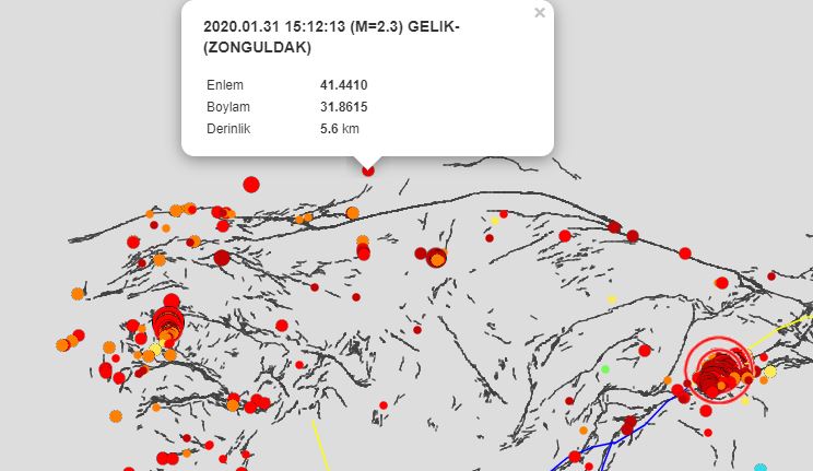 Zonguldak dün öğleden sonra 15.12 sularında 2,3 şiddetinde sallandı. Kandilli Rasathanesi Ve Deprem Araştırma Enstitüsü (Krdae) verilerine göre merkez üssü Gelik Beldesi olan deprem 5,6 km derinlikte meydana geldi.