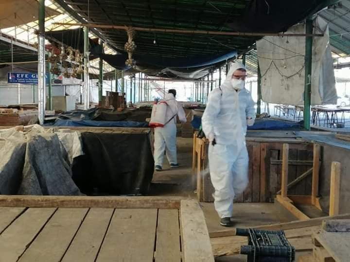 Bu kapsamda Kozlu Belediyesi Temizlik İşleri Müdürlüğü bünyesinde oluşturulan dezenfekte ekibi, kurulacak olan pazar öncesinde Kozlu’da bulunan kapalı pazar yeri içerisinde yoğun bir çalışma gerçekleştirdi. Belediyeye bağlı ekipler tarafından gerçekleştirilen temizlik çalışmalarının ardından pazar içerisinde sebze, meyve ve bakliyat ürünlerinin satıldığı bölümler, titiz bir çalışmayla ilaçlanarak dezenfekte edildi.