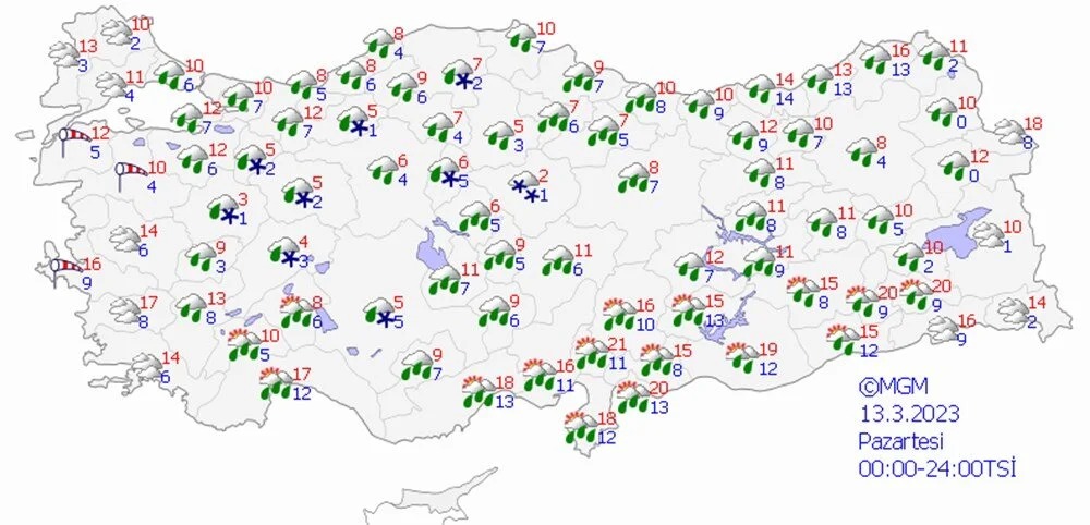 Meteoroloji Genel Müdürlüğü (MGM) 13-17 Mart tarihli yayınladığı hava tahmin raporunda 18 il için kuvvetli yağış ve fırtına uyarısında bulundu.