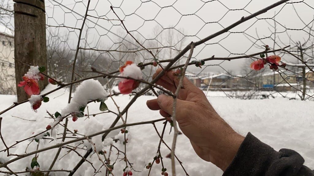 Bartın’da etkili olan kar yağışına rağmen Ocak ayında nar ve erik ağaçları çiçek açtı.