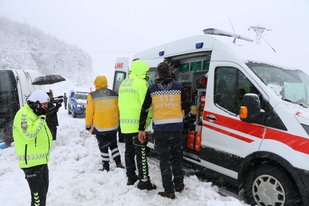 Kar yağışı nedeniyle yolda kalan 2 tır, ambulansların olay yerine gelişini güçleştirirken uzun trafik kuyruğu oluştu. Kaza sırasında otobüste bulunan bir yolcu yaşadığı dehşet anlarını gazetecilere anlattı.