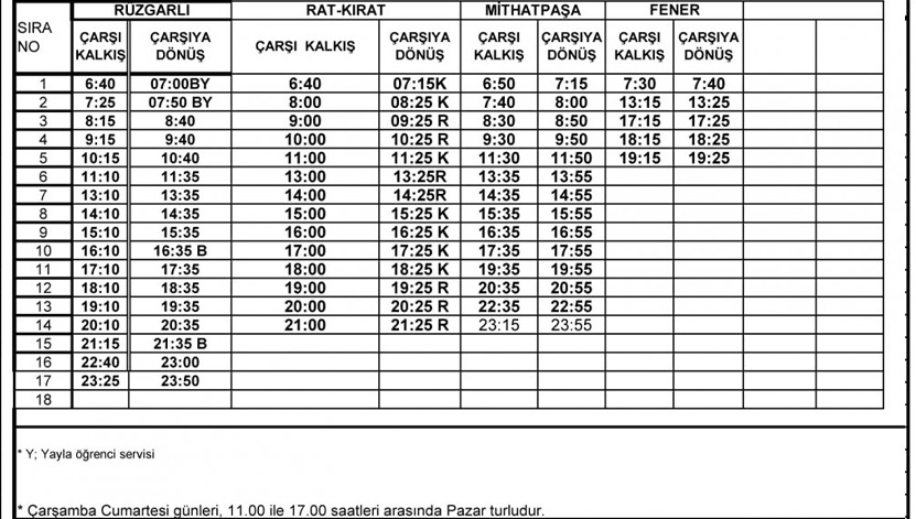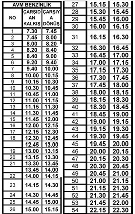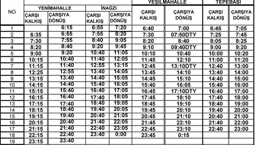 Zonguldak Belediyesi’nden yapılan açıklamaya göre otobüs saatleri şu şekilde;
