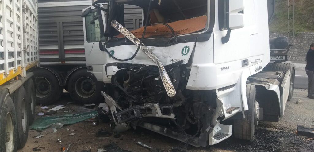Zonguldak'ta virajı alamayan PTT'ye ait kargo aracı kontrolden çıkıp park halindeki üç tıra çarparak durabildi. Kazada üç kişi yaralandı.