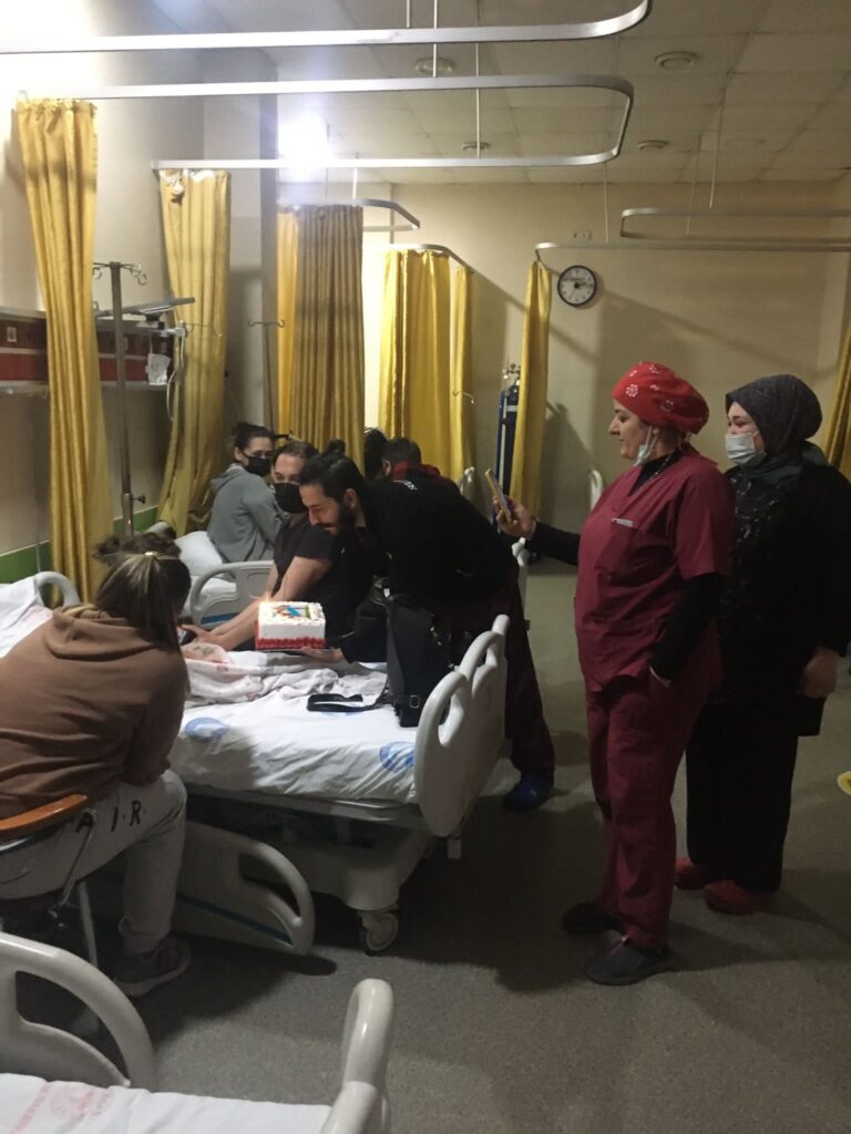 Ardından sağlık personelleri Çocuk Bayramı için özel olarak yaptırdıkları pastayı miniklere üfleterek bayramını kutladı.