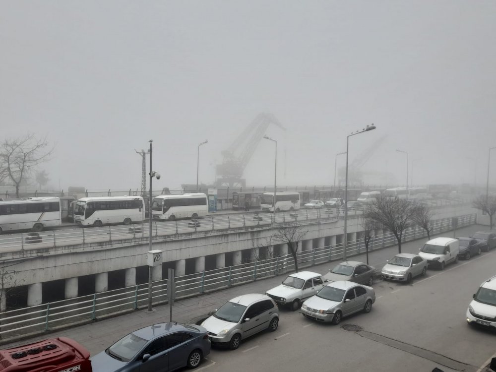 Zonguldak Merkez'de öğle saatlerinden itibaren özellikle merkez ve sahil kenarlarında yoğun sis bulutu çöktü.