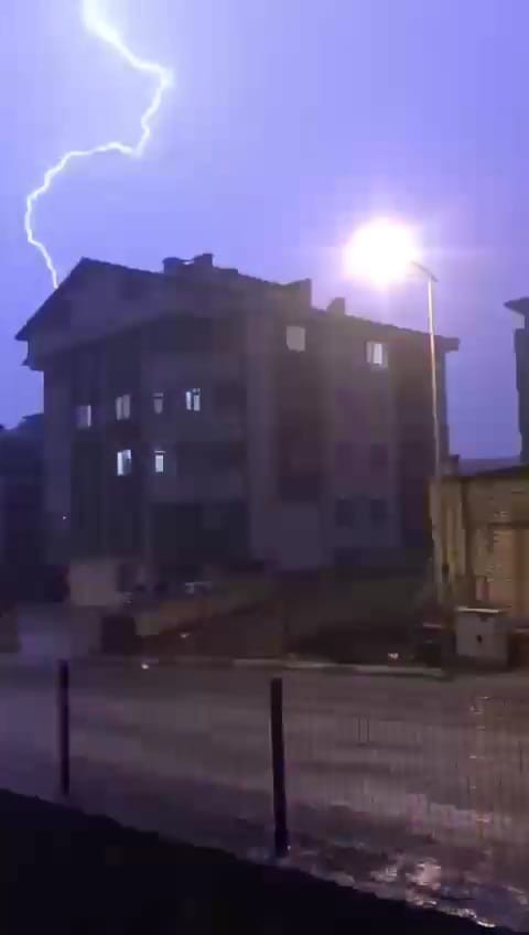 Her saniye çakan şimşekler ile gecenin karanlığı aydınlığa döndü. Adeta görsel şölene dönüşen o anlar ise saniye saniye kaydedildi.